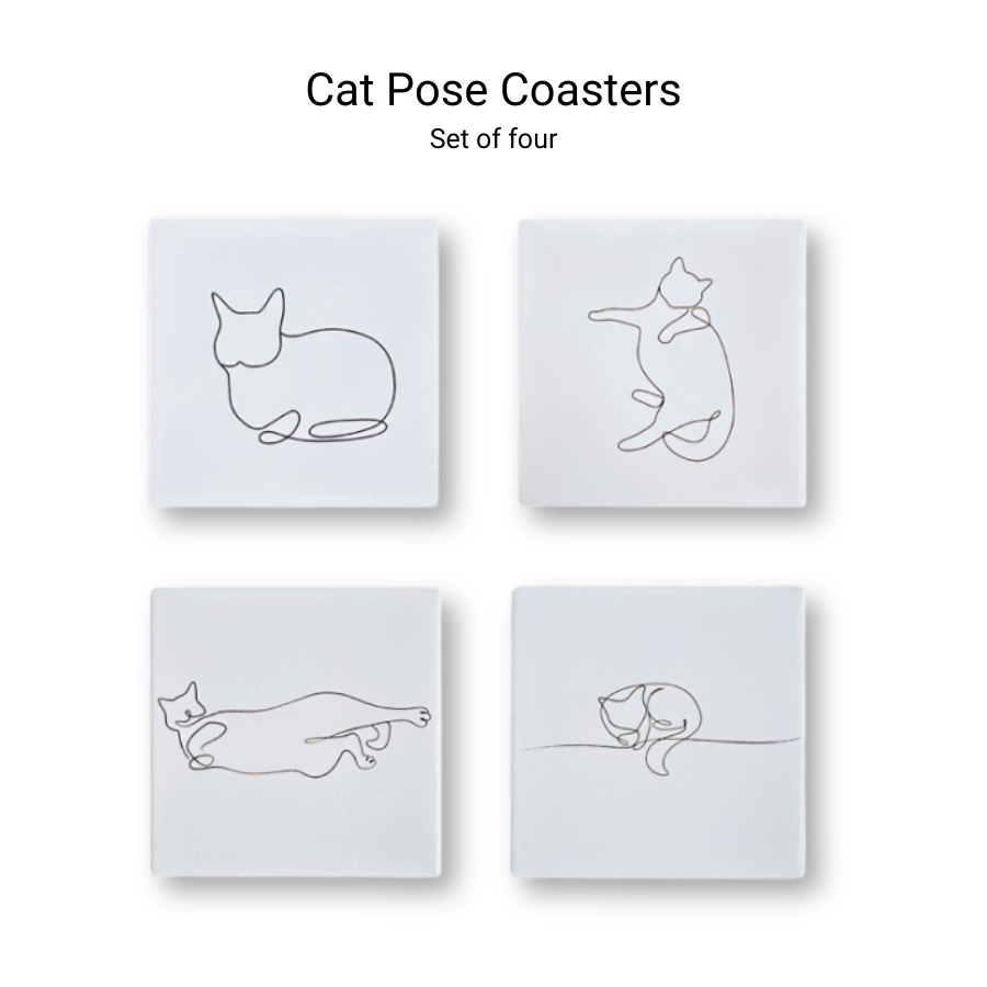 Coasters: You truly can't go wrong with either set. Both designs are inspired by cats and their unique poses that make us smile. They are tastefully minimalistic with a touch of cheeky charm that will delight both you and your guests (while protecting your surfaces)!